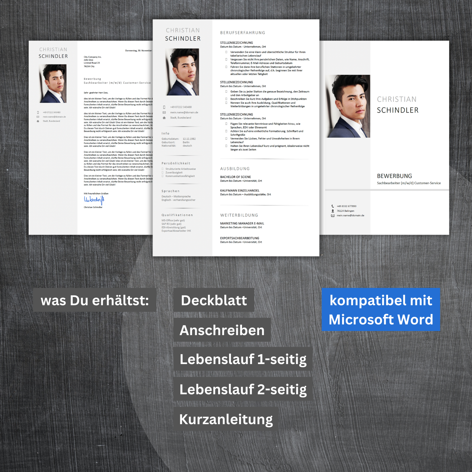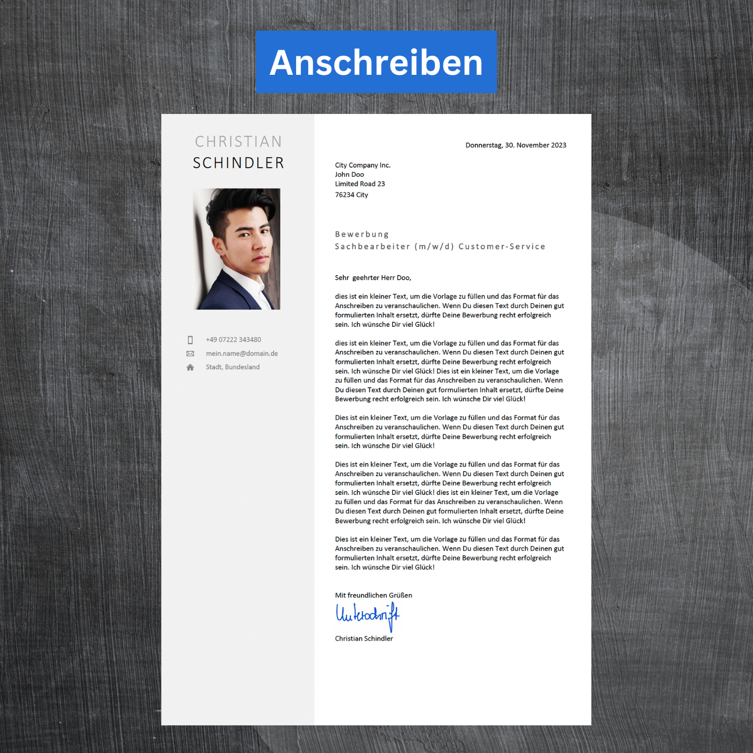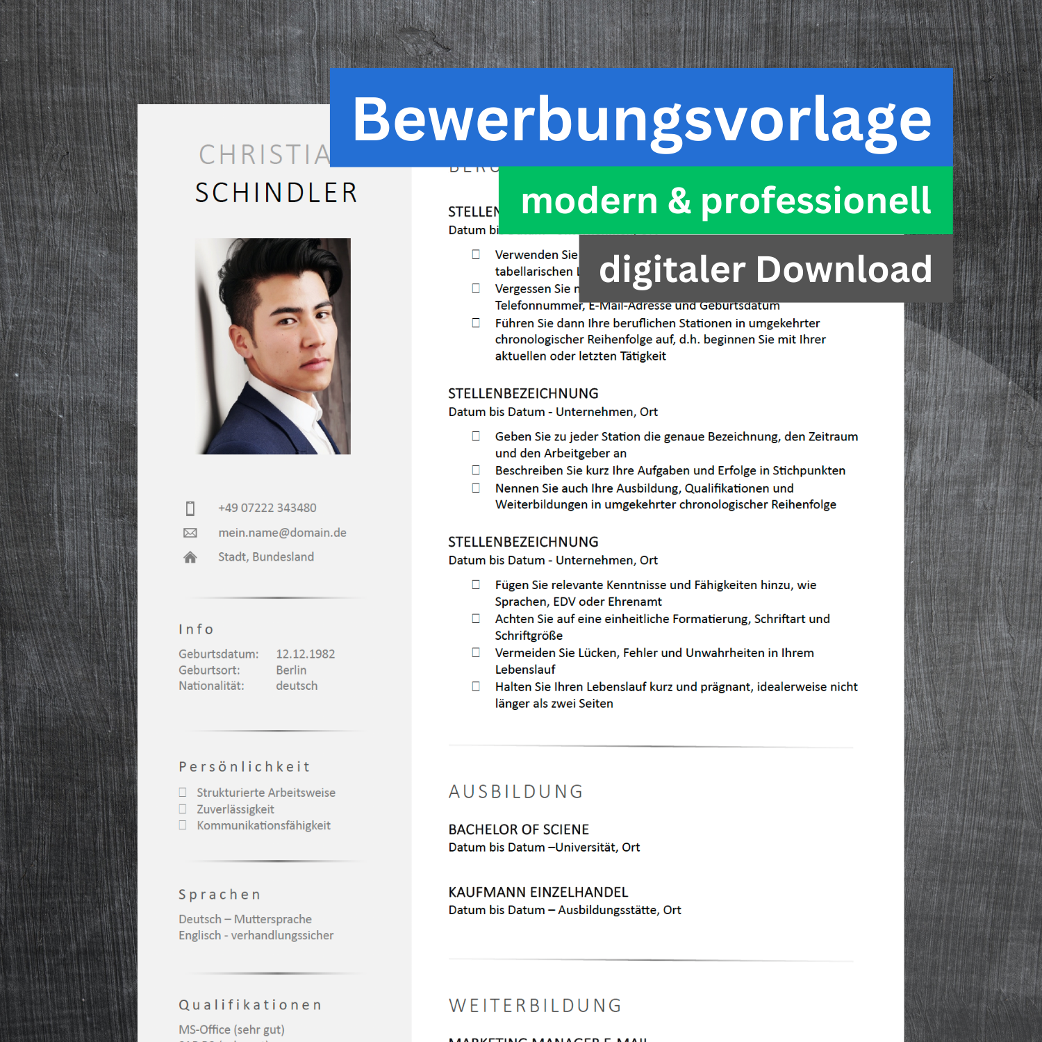 Professionelle und moderne Bewerbungsvorlage in deutsch. Einfaches Anpassen und Ausfüllen. Kompatibel mit Microsoft Word. Sofortiger Download und Hilfe bei Problemen.
