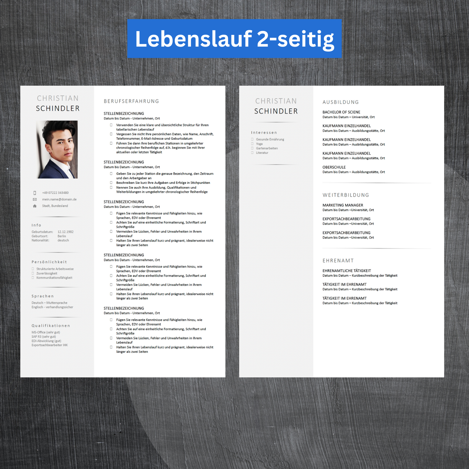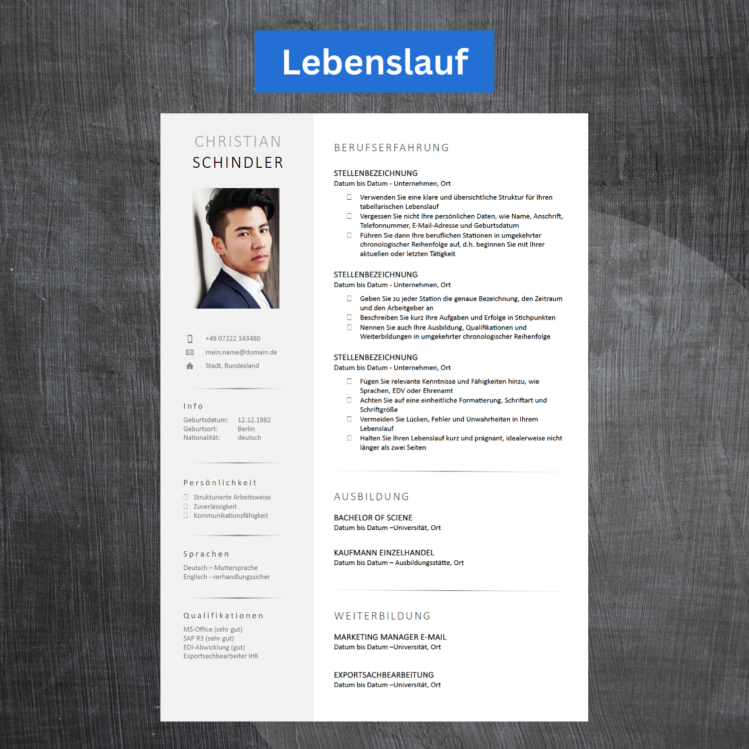 - tabellarischen Lebenslauf (1-seitig und 2-seitig)