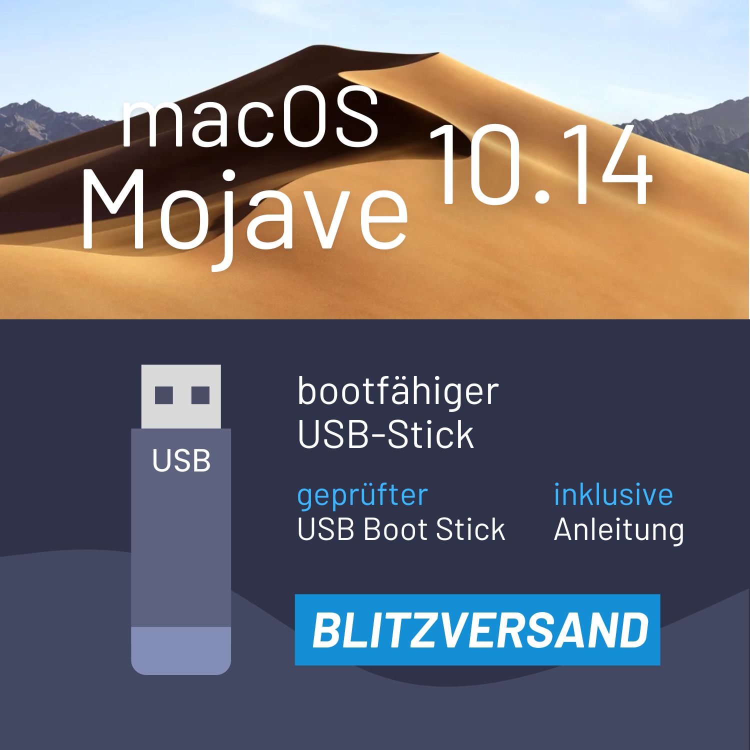 Dieser USB-Stick enthält das apple macOS Mojave. Der USB-Stick wurde auf Bootfähigkeit geprüft. Eine Installation auf einem Windows PC ist nicht möglich. Prüfe vor dem Kauf, ob Dein Gerät kompatibel ist.